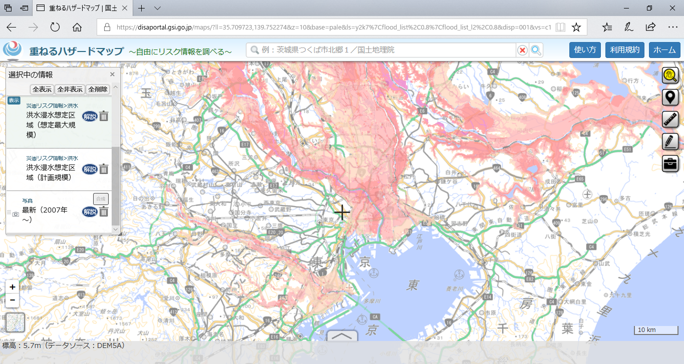「国土交通省ハザードマップポータルサイト」では、「洪水」「土砂災害」「津波」の3項目で、全国の状況を確認することができます。