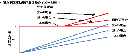 利率が変わるだけですので、変額保険のように大きく増えることまでは期待できません。