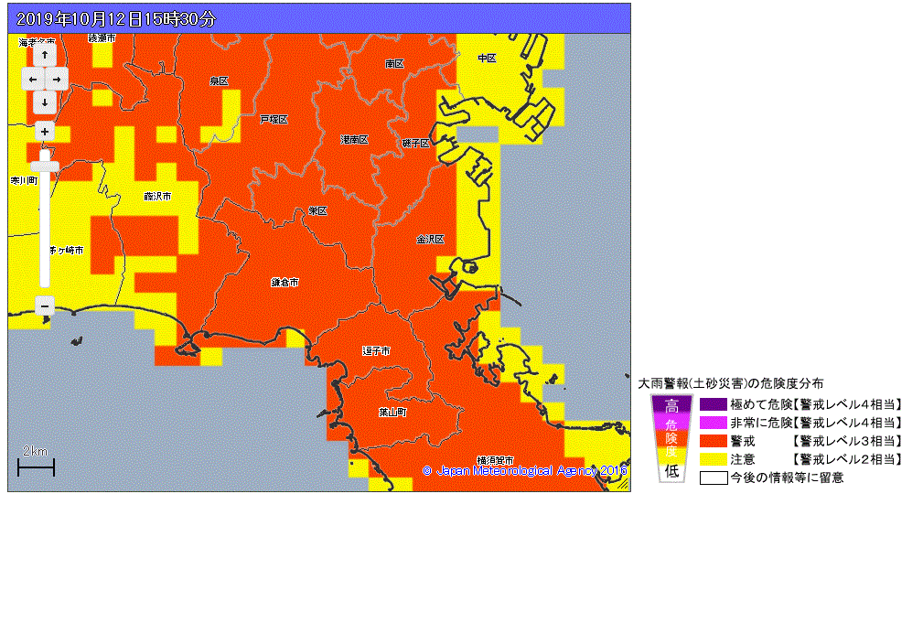 テレビでもずっと台風情報を流していますが、具体的に自宅周辺の状況はつかみにくいものです。まずは、気象庁の「防災情報」のサイトで確認してください。
